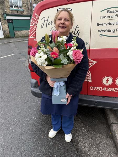 A beautiful mix of beautiful flowers hand crafted by the amazing team at Heritage Bouquets By Michelle. Colours and flowers may be different.