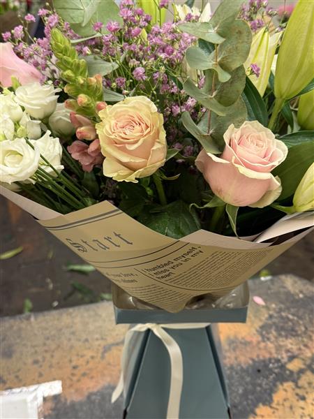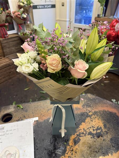 A florist choice favourite a mixture or soft pink and white blooms